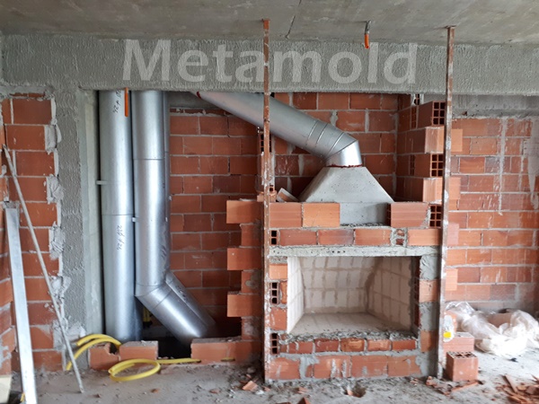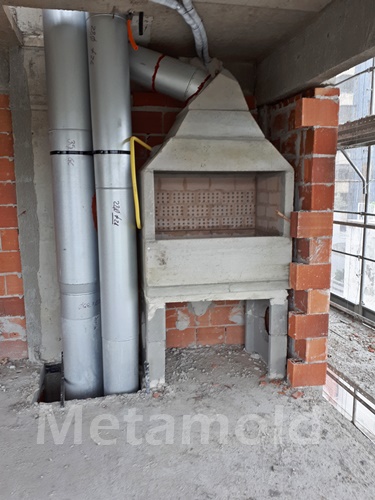 Conjunto de chaminés instaladas à espera de revestimento de alvenaria