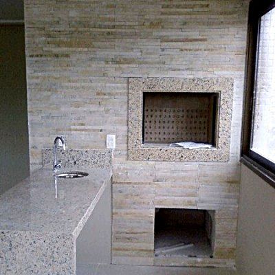 Churrasqueira pré-moldada modelo Basic com espera para chaminé coletiva em alvenaria