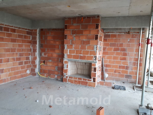 Lareira a ser revestida na obra.