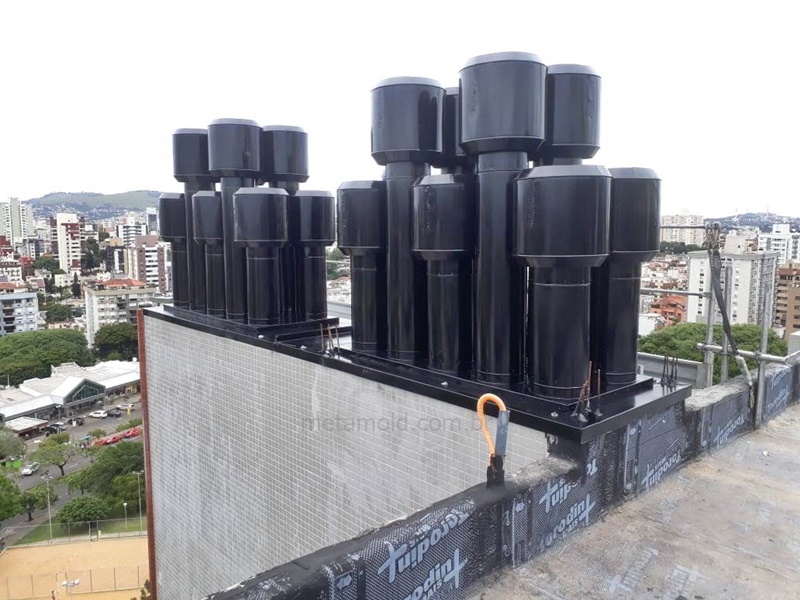 Terminal chaminé com exaustor interno, para churrasqueiras coletivas.