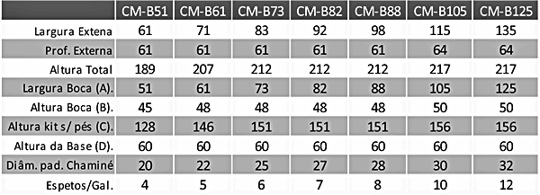 Por outro lado, nos modelos da linha Basic, as churrasqueiras possuem placas refratárias apenas na câmara de fogo. Esta facilidade ajuda quando é procurado uma melhor relação custo-benefício ou há interesse de instalar rotativo, pois proporciona mais espaço dentro da área util.