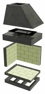 Lareira de canto pré-fabricadas, para receber acabamento em alvenaria. Com material refratário e isolante. Câmara de fogo com plaquetas refratárias sobre todo o corpo da lareira. As lareiras METAMOLD já saem de fábrica com damper de regulagem e garganta, o que lhes garantem um funcionamento muito bom. Há muita vantagem em usar lareira no canto, pois ocupam menos espaços